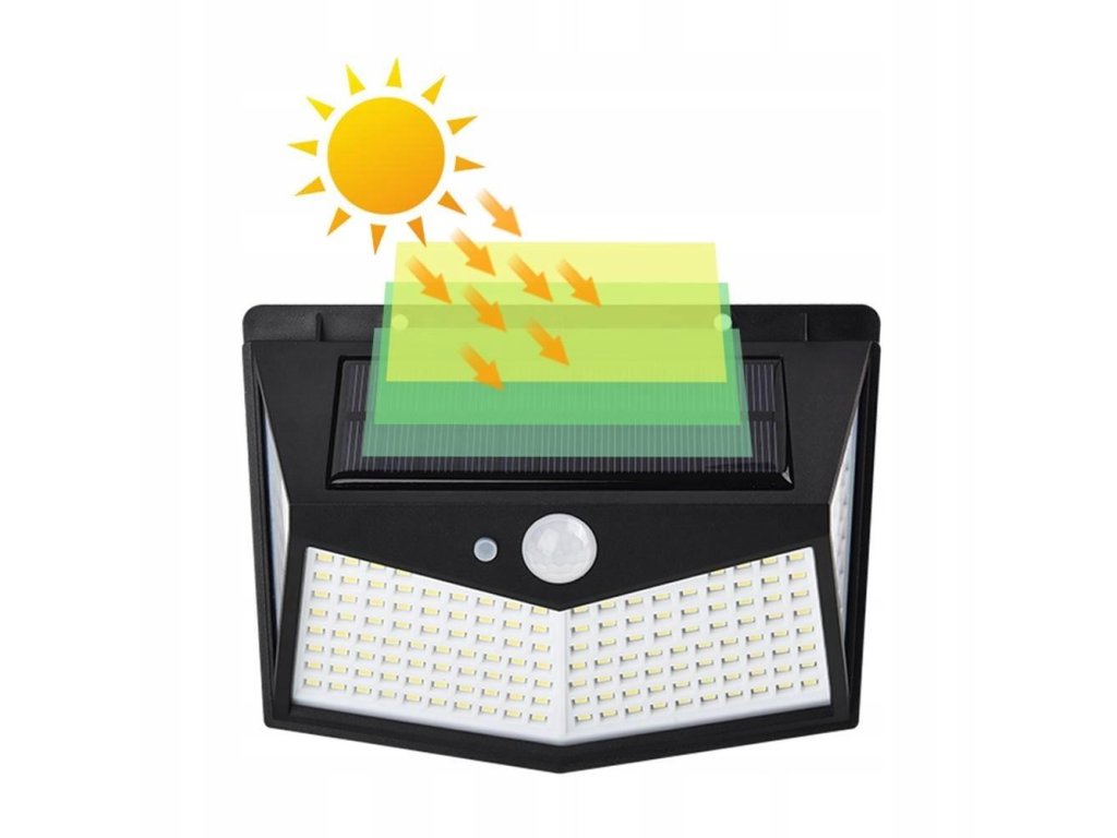 Vonkajšie solárne nástenné svetlo 212 LED detektor pohybu Solárne batériové svietidlo s vstavaným PIR čidlom je vybavené fotovoltaickým panelom, ktorý sa používa pre nabíjanie vstavané dobíjacie batérie. Navrhnuté pre vonkajšie osvetlenie, dobíjanie pomocou slnečnej energie vstavaným solárnym panelom.