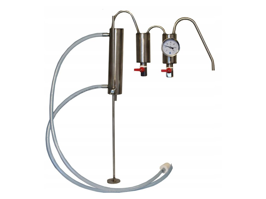 - chladič z nerezovej ocele s 2,5-metrový špirálou z fi 8 mm rúrky !!!