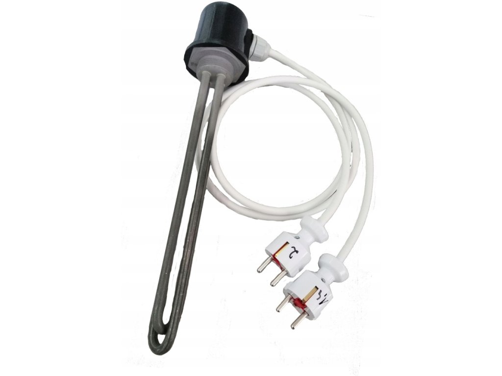 Kyselinovzdorný ohrievač s celkovým výkonom 3 400 W, dvoma vykurovacími drôtmi s výkonom 1 400 W a 2 000 W so samostatnými spínačmi, plášťom s káblom 1,5 m a zástrčkou pre 5/4 "závit.
