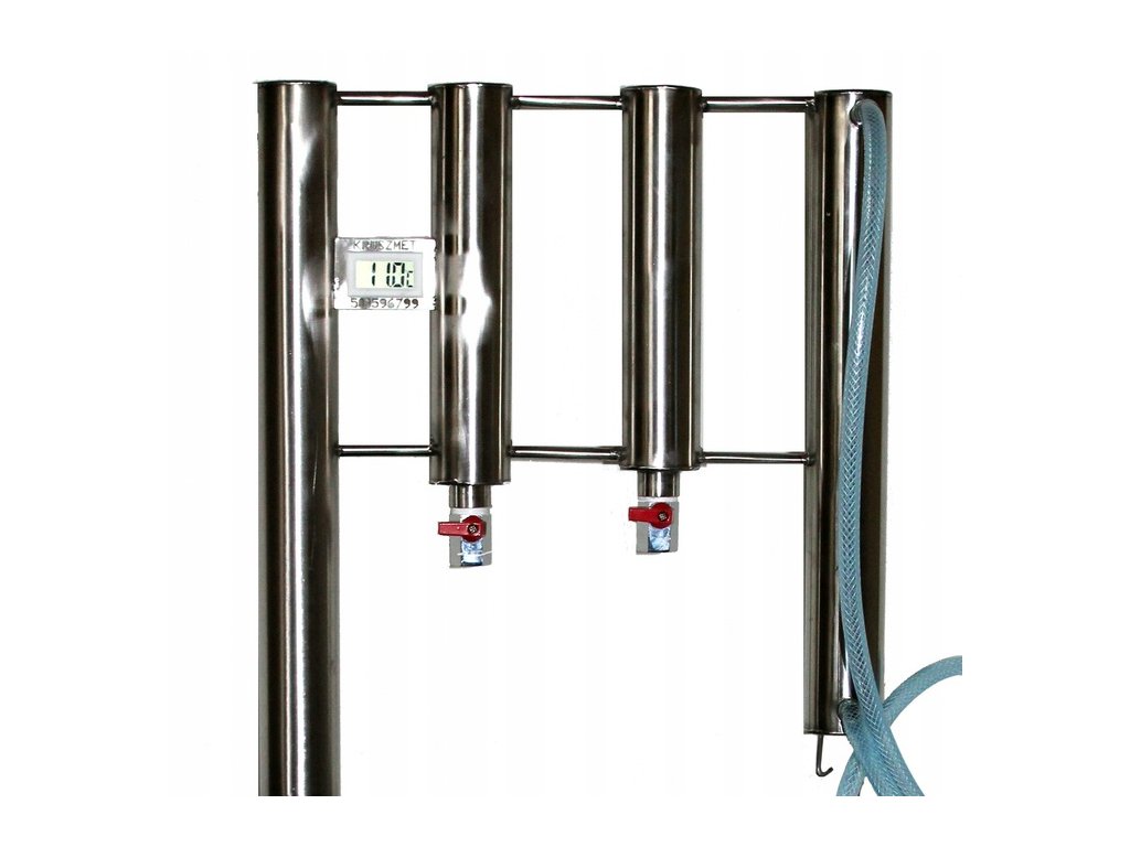 4. Chladič je vyrobený z rúrky 8 mm dlhé 4 metre vyrobené z nerezovej ocele, ktorá zaisťuje dokonalé chladenie a bezchybnú kvalitu destilátu. Vďaka použitiu najväčšieho kondenzátora u tohto typu liehovarov vyteká destilát úplne ochladený. Veľký chladič výrazne zvyšuje efektivitu práce.