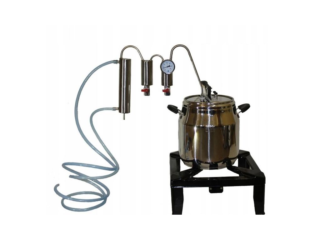 Destilačný prístroj je vyrobený z vysoko kvalitnej ocele odolnej voči kyselinám, zvárané metódou TIG v argónovej štítu. Ideálne pre destilácie vody, esenciálnych olejov a iných tekutín. Z prístroja uniká žiadna vône z destilovaných kvapalín.