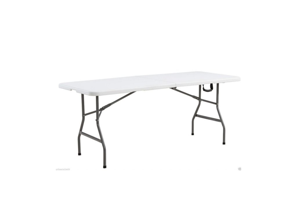 Praktický a ľahko zostaviteľný cateringový stôl 180 cm, ideálny na použitie pri akciách, banketoch, večierkoch a kempovaní. Vďaka možnosti samostatne ho zložiť a preniesť do požadovanej polohy je veľmi mobilný a ľahko skladný.