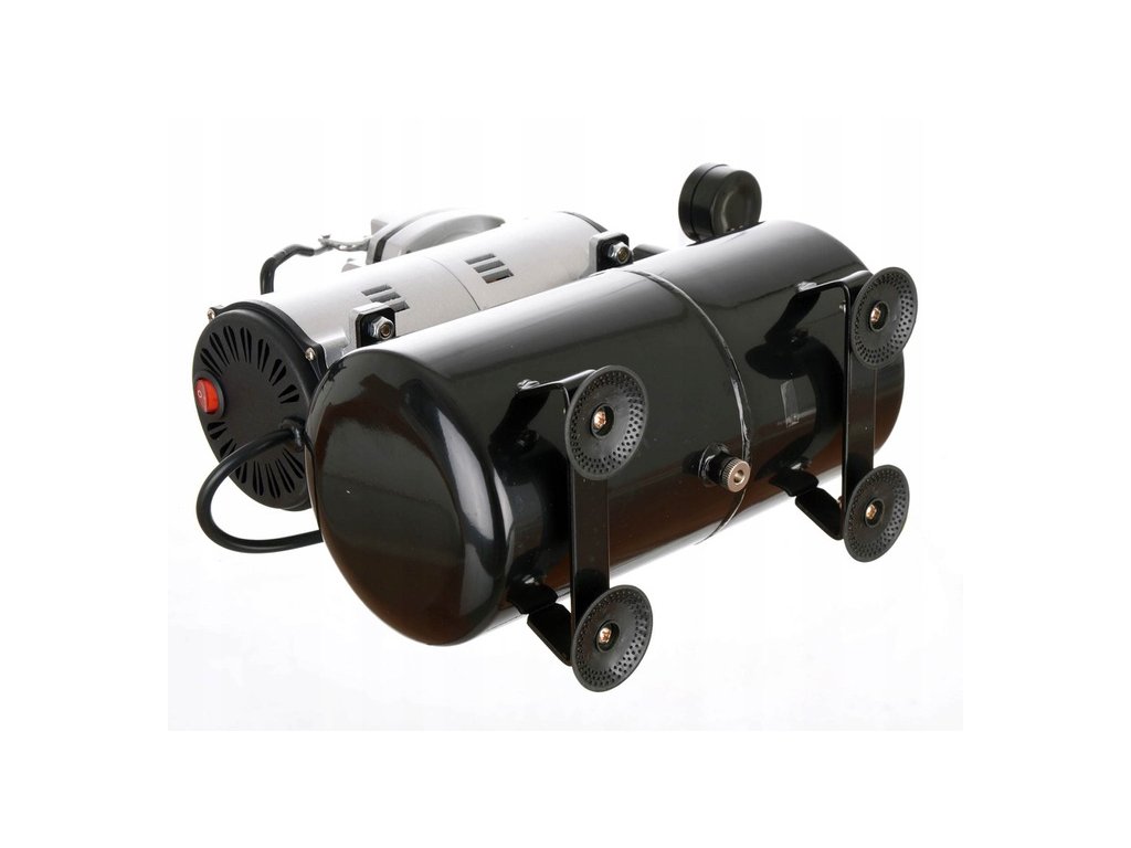 PRÁCE - kompresor pracuje s airbrushes s tryskami od 0,2 do 0,8 mm. Vďaka vysokému výkonu a konštrukciu s valcovým valcom (chladenie). Fľaša stabilizuje vzduch (bez pulzácie)