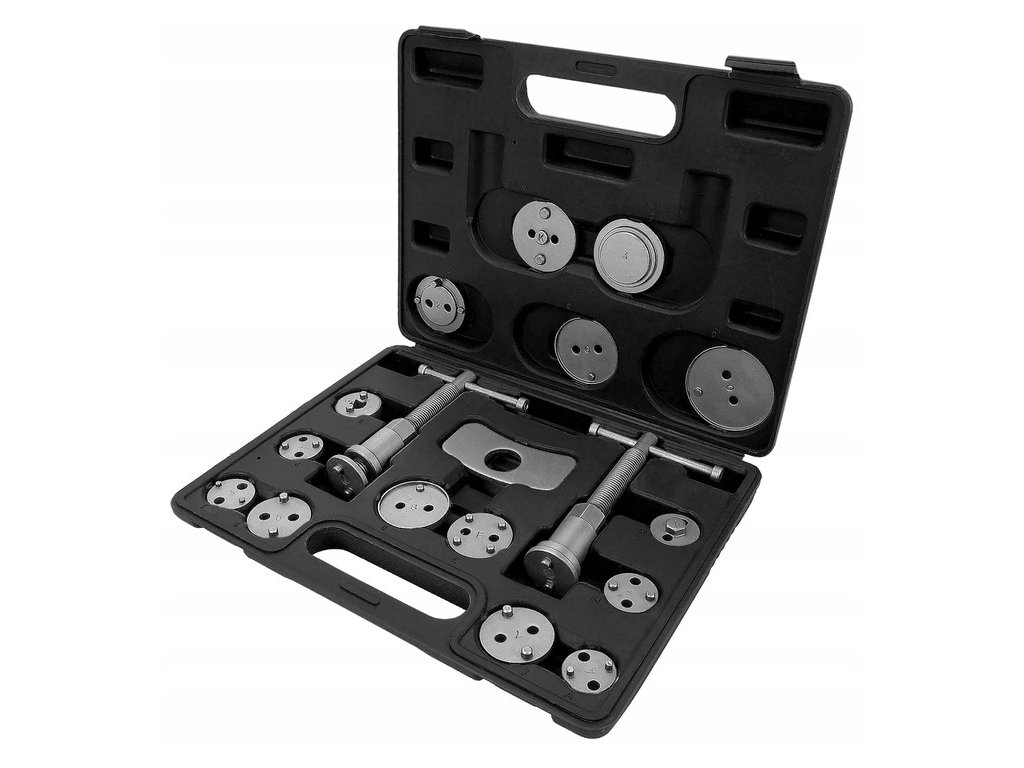 Sada obsahuje prípravky pre všetky bežné automobily + automobily, ktoré majú odlišnú skrutkovici na zadných brzdiče. Ľavú a pravú