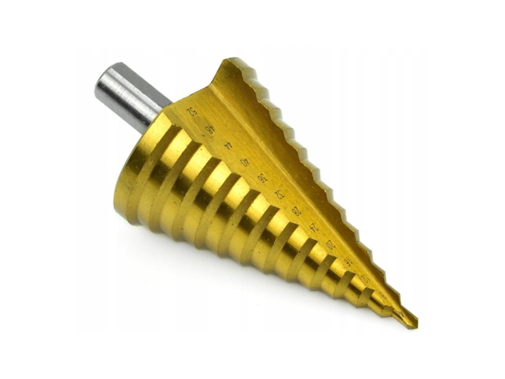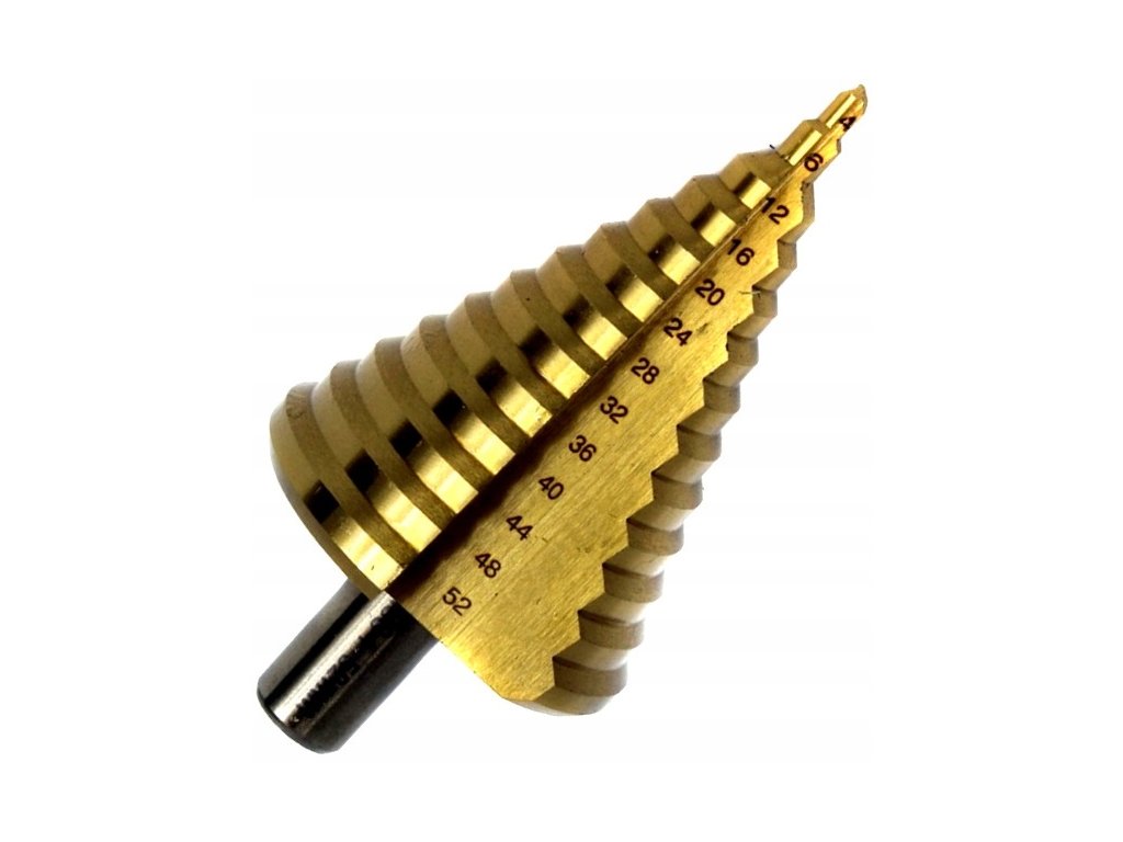 Vysoko kvalitné kužeľovité vrtáky z vysokorýchlostnej rýchloreznej ocele HSS + TYTAN. Určené na kovy, tenkostenné oceľové plechy a plasty.