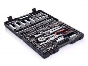 Populárna sada očkoplochých kľúčov a nástrčných hlavíc uložená v kufri....