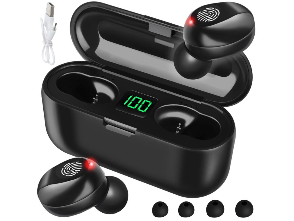 Bezdrôtové mini stereo slúchadlá + handsfree s bluetooth 5.0 s nabíjacou stanicou 2000 mAh slúžiacou aj ako powerbanka. LED displej s číselným ukazovateľom nabitia. Univerzálne pripojenie k mobilným telefónom a PC. Kompatibilný s iOS, Android, Windows, Mac OS.