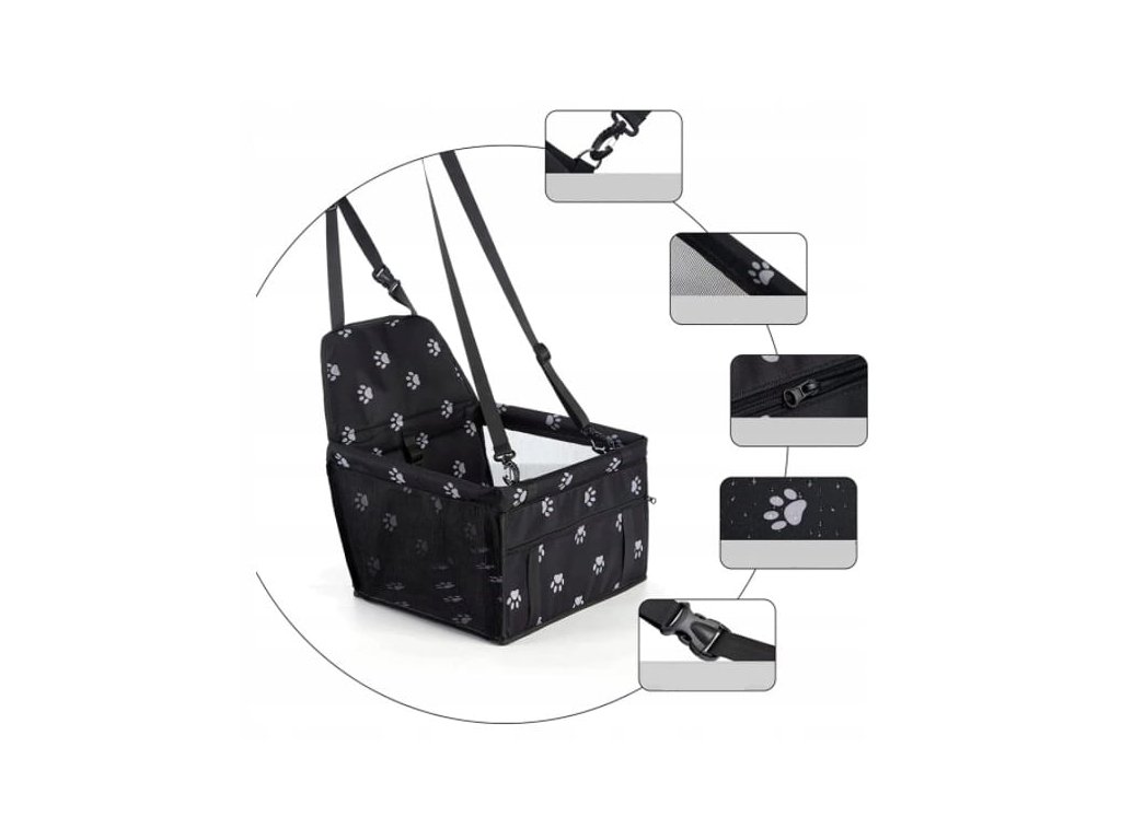 Dopřejte svému mazlíčkovi bezpečné a pohodlné cestování s autosedačkou pro psy v elegantním černém provedení s motivem tlapky. Tato praktická autosedačka je ideální pro menší psy a kočky, kterým zajistí stabilitu během jízdy a ochrání interiér vozu před chlupy a nečistotami.