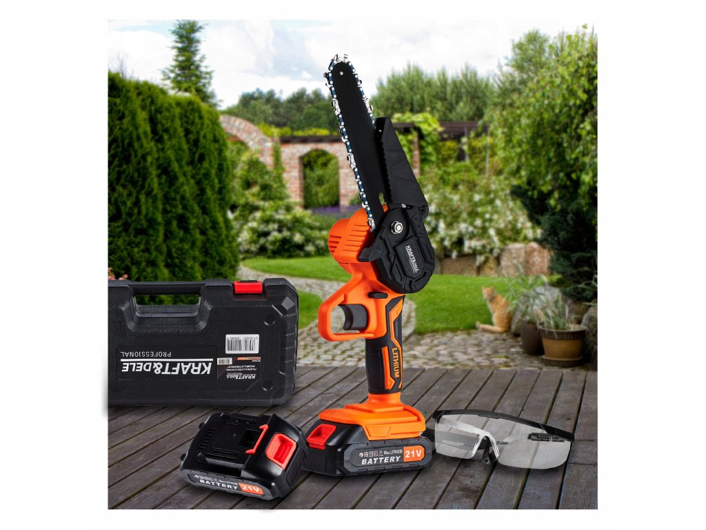 Kraft&Dele KD10626 Mini aku reťazová píla je perfektnou kombináciou vysokého výkonu, ergonomického dizajnu a všestrannosti.
