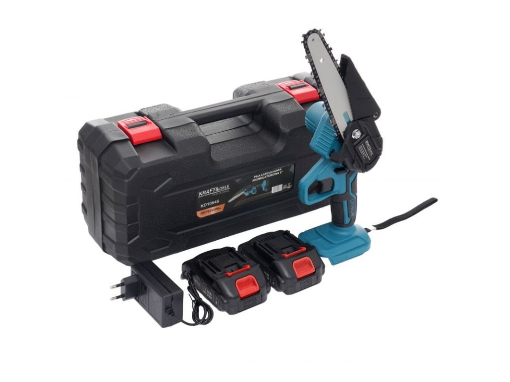 Kraft&Dele KD10646 Mini aku reťazová píla je perfektnou kombináciou vysokého výkonu, ergonomického dizajnu a všestrannosti.