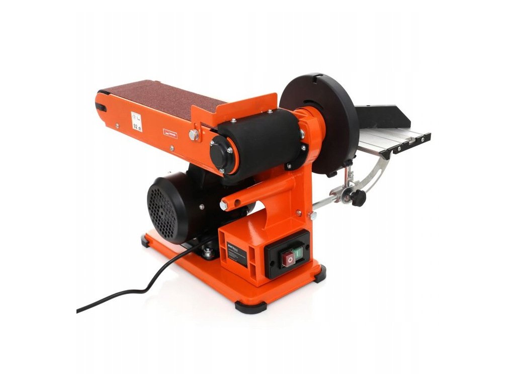 Zariadenie je určené pre suchú prácu. Má naklápací stôl, ktorý umožňuje prácu kolmo ku kotúču (v rozsahu 0-45 stupňov) a pásový stôl ktorý má schopnosť pracovať horizontálne aj vertikálne (v rozsahu 0-90 stupňov).