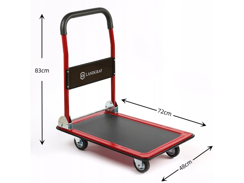 Vozík je vybavený protišmykovou plošinou a na okrajoch je opatrený ochrannou gumou na tlmenie nárazov. Vďaka skladacej rukoväti zaberá po zložení veľmi málo miesta.