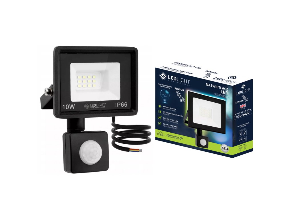 Halogénová LED lampa s pohybovým senzorom – studená biela, 10W, IP66