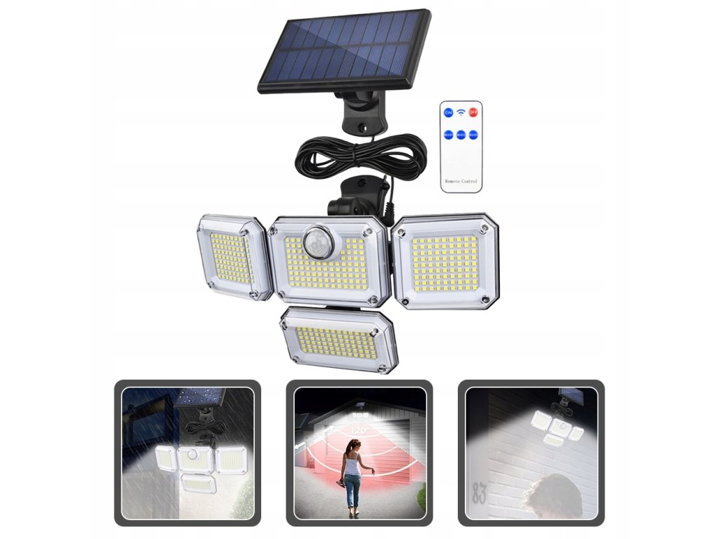 LEDLIGHT – Solárna LED lampa s pohybovým a súmrakovým senzorom, SMD diódami, diaľkovým ovládaním a ochranou IP65