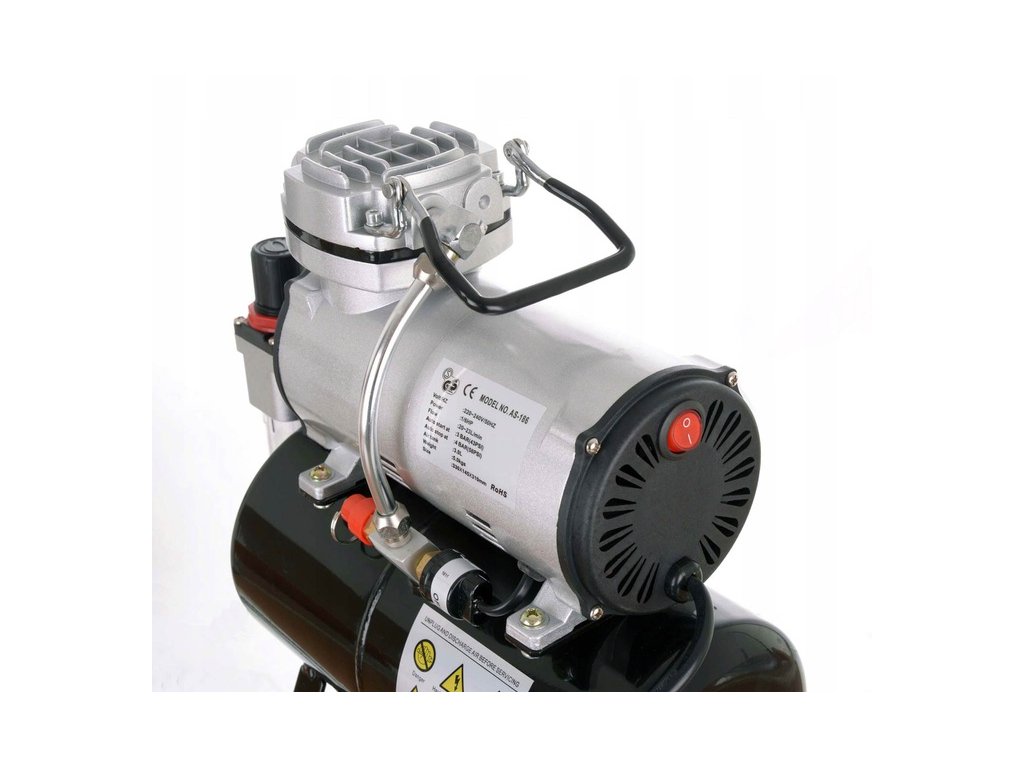 Kompresor Airbrush 3L pre Lakovanie Maľovaní 1/6 HP 125W CE. Používa sa v kozmetických salónoch, najčastejšie tetovanie v oblasti modelovania a drobných maliarskych prác.