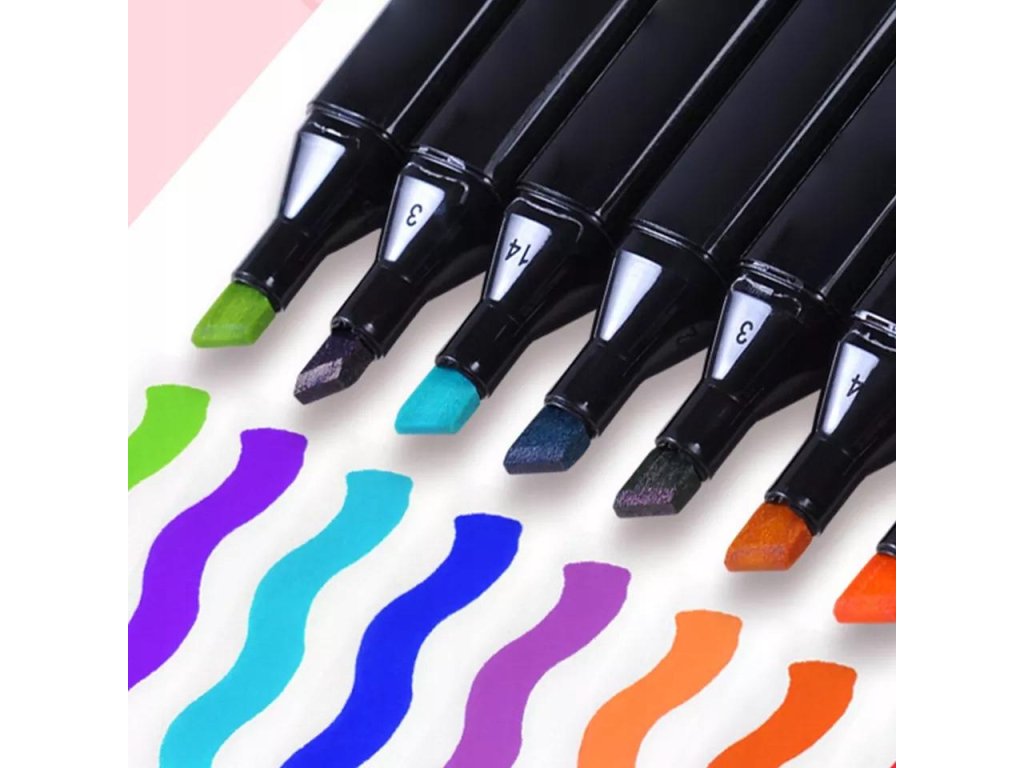 Jemný hrot na jednej strane a široký skosený hrot na strane druhej popisovača (bez štetca) ponúka rozsah hrúbok čiar väčší ako kedykoľvek predtým. Ergonomicky tvarované telo obdĺžnikového tvaru brania kotúľania sa po pracovnej ploche a umožňuje pohodlné odloženie bez neúmyselných šmúh. Špeciálne navrhnutý bezpečnostný uzáver pevne drží na popisovači a zabraňuje poškodeniu hrotu. Marker obsahuje atrament na báze alkoholu, ktorý je rýchloschnúci, netoxický a vode odolný.