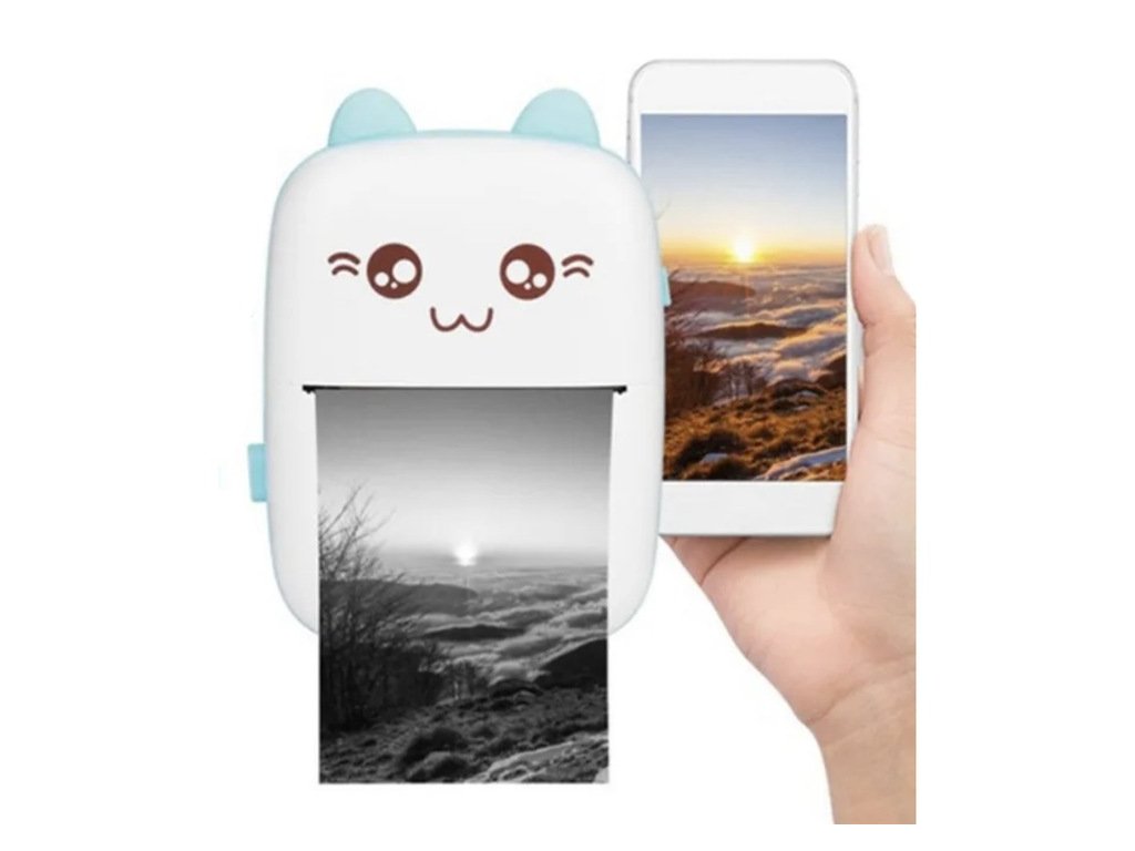 mini tlačiareň má kompaktné rozmery, vďaka čomu sa ľahko prenáša, používa a skladuje. Ľahko sa zmestí do kabelky, batohu alebo dokonca vrecka. Dizajn mačky osloví deti a tínedžerov.