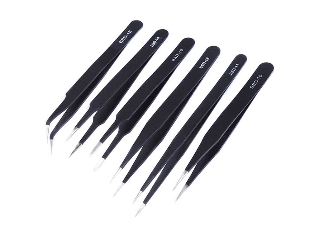 Súprava antistatických pinziet pre servisné a modelovacie aplikácie. Sada obsahuje 6 pinziet, potrebných pre akúkoľvek opravu elektroniky.