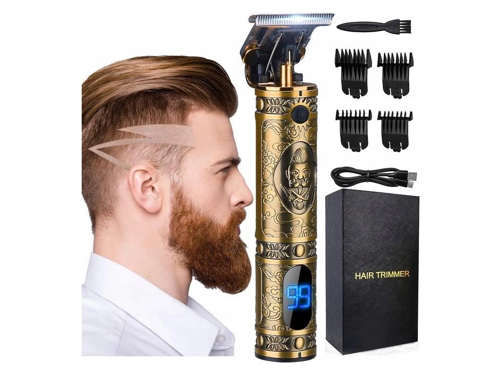 Bezdrôtový holiaci strojček - zastrihávač pre komfortné zastrihnutie vlasov a fúzov. Moderný a elegantný vzhľad s LED displejom.
