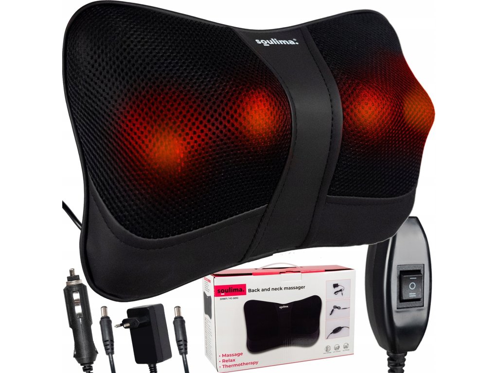 Masážny vankúš je vybavený 2 hlavami, každá s 2 masážnymi loptičkami. Poskytuje relaxačnú masáž a uvoľnenie akejkoľvek časti tela (šija, chrbtica, chrbát, nohy). Prístroj je vyrobený z vysoko kvalitnej ekokože a priedušnej mikro sieťoviny, vďaka čomu je masáž ešte pohodlnejšia.