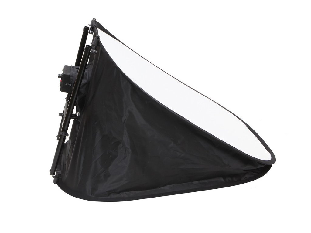 Predstavujeme podlahový softbox, skvelý doplnok do vášho fotoateliéru. Je ideálny pre osvetlenie objektu zospodu. Umožňuje vám zmäkčiť a ovládať lesk z prízemia. Vďaka tomuto osvetlenia sa zbavíme nežiaducich tieňov (napr. Oblasti krku alebo očí). Softbox vytvára mäkké svetlo vhodné pre tvorbu kvalitných fotografií bez odleskov. Podlahový Softbox je vhodný pre fotenie figurín, manekýn, a všade tam kde potrebujeme svetlo zo predu a spodu.