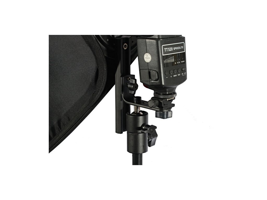 Sada obsahuje kovový adaptér a výložník, ktorý umožňuje namontovať lampu a horák nasmerovať do vrchlíka. Lampa zostáva k dispozícii fotografovi, ktorý môže priebežne upravovať jej nastavenia. Ide o oveľa pohodlnejšie riešenie ako použitie dáždnikových softboxov, v ktorých je lampa umiestnená vnútri celej konštrukcie.