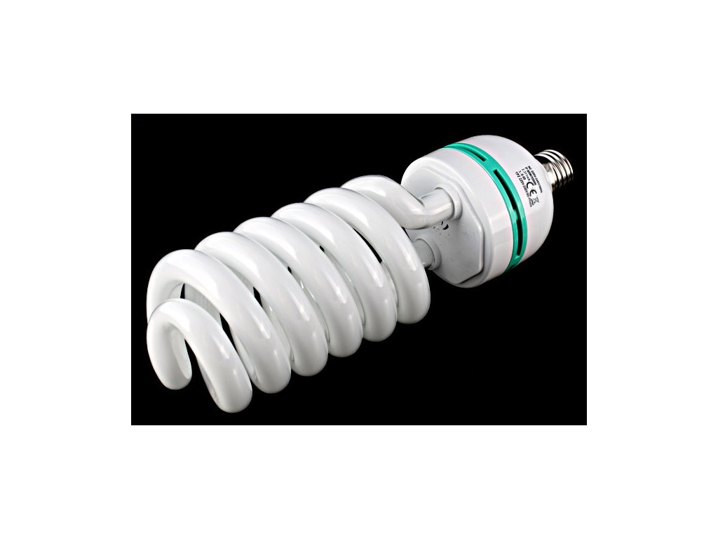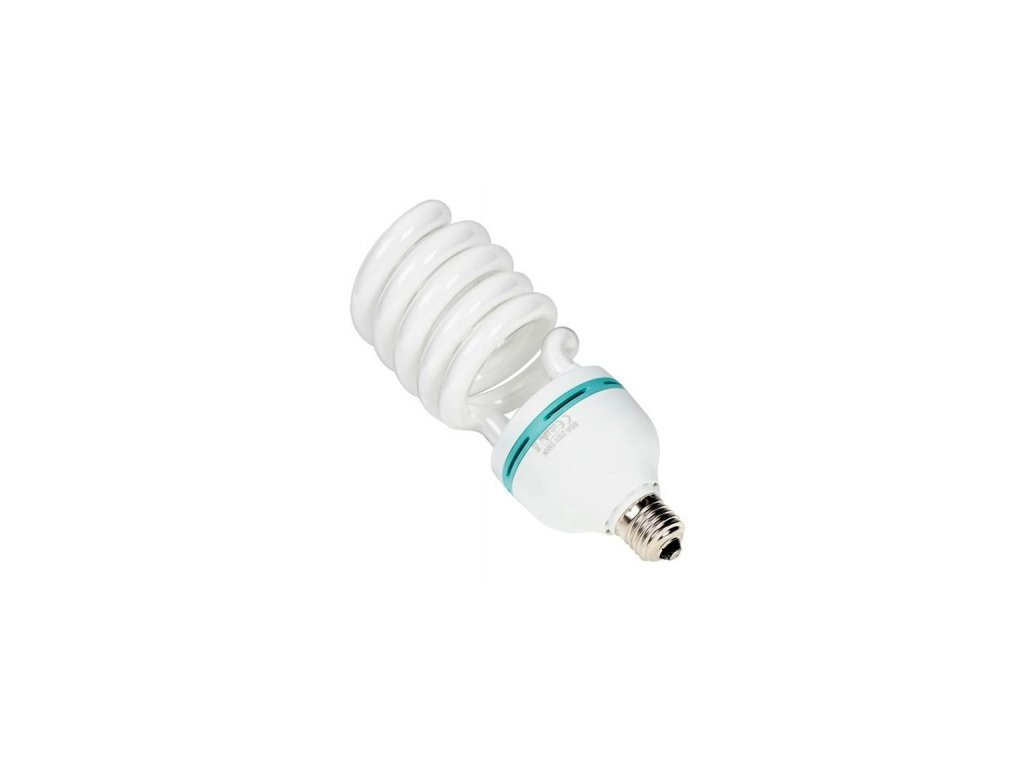 Špirálová úsporná foto žiarovka s príkonom 85W (400W) a s farebnou teplotou 5500K - denné svetlo (daylight), svetelný výkon ako 550-600w bežná žiarovka. Žiarovka má univerzálne päticu E27. Žiarovka tohto typu je vhodná do stálych štúdiových svetiel, držiakov žiaroviek a softboxov.