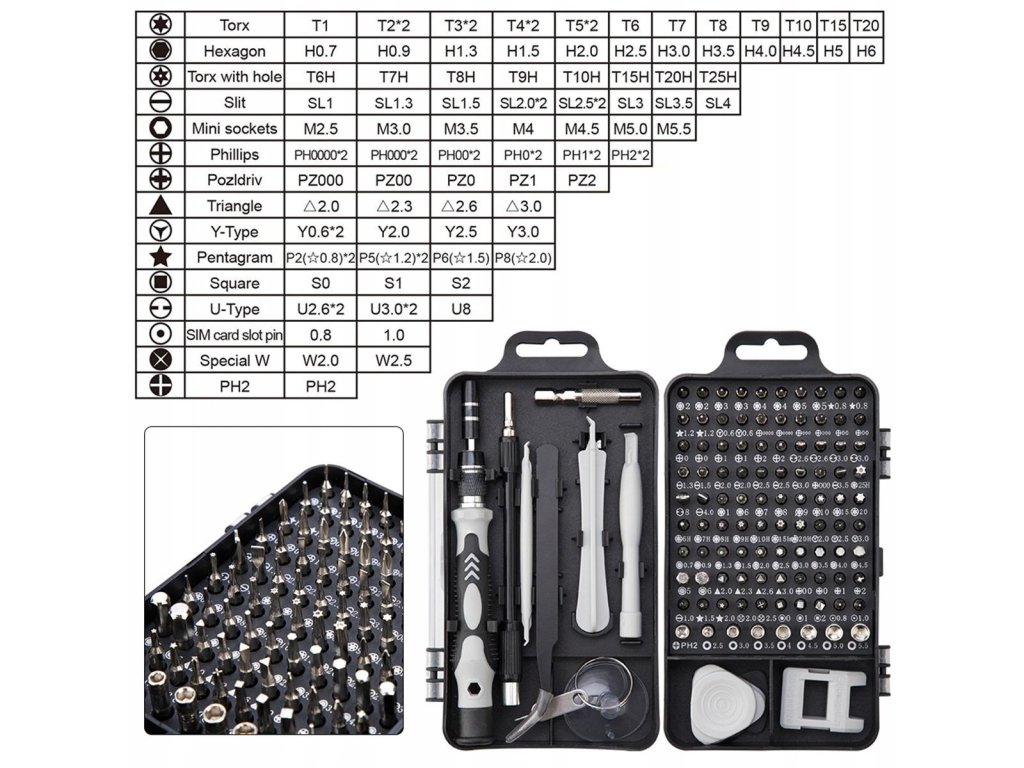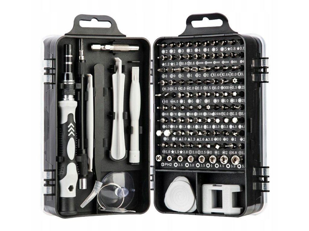 Sada obsahuje ergonomický skrutkovač, až 100 vymeniteľných matíc (bitov), nadstavec, pinzetu, magnetizér a rad ďalších adaptérov a otváračov, ktoré úspešne uľahčia prácu každému majstrovi. Celok bol umiestnený vo funkčnom kompaktnom puzdre. Perfektný pre amatérske aj profesionálne podmienky (dielne a služby).