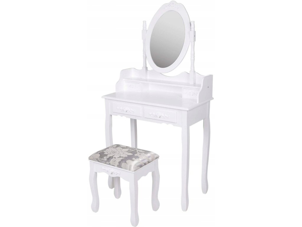 Krásny štýlový toaletný stolík s trojitým otočným zrkadlom a pohodlným sedadlom - taburetom. Jemné tvary, krásny štýl – to všetko spôsobuje, že toaletný stolík je absolútne výnimočný! Koniec s nepohodlím!