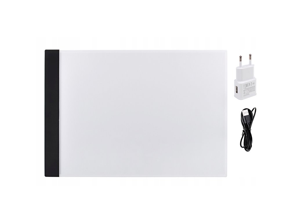 Ultra ľahká tenká presvetľovací podložka. Napája sa USB káblom z USB konektora alebo z elektrickej siete (sieťový adaptér nie je súčasťou balenia. Možno použiť akýkoľvek univerzálny sieťový adaptér napr. Od nabíjačky k telefónu)