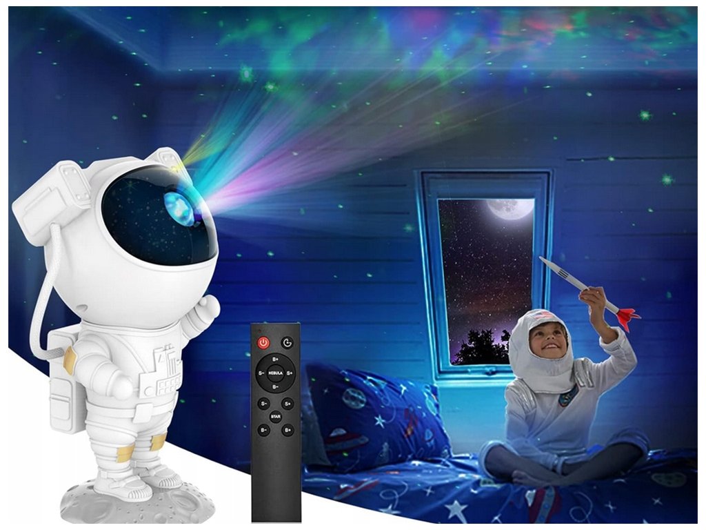 Vďaka rôznym režimom osvetlenia a farebným efektom vytvára projektor magickú atmosféru, ideálnu na zaspávanie alebo relaxáciu. Zábavný vzhľad astronauta s pohyblivou hlavou umožňuje deťom nasmerovať svetlo na vybrané miesto a podporuje ich zvedavosť o vesmíre a dobrodružstvách medzi hviezdami.