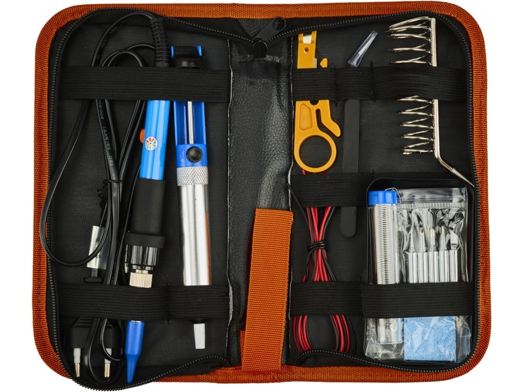 Hrotová mikrospájkovačka 60w ideálna ako pre domácich majstrov, tak pre profesionálov zaoberajúcich sa elektronikou. Sada obsahuje presnú spájku, ktorá zaisťuje spoľahlivé a pevné spojenie súčiastok, a príslušenstvo, ako je spájka, stojan, 5 hrotov, huba, odsávačka, cín, pinzeta, odstraňovač izolácie, 2 náhradné káble (čierny a červený) a puzdro. Ergonomická rukoväť a možnosť regulácie teploty umožňujú pohodlnú a bezpečnú prácu. Spájkovacia sada je nevyhnutná pre opravy,